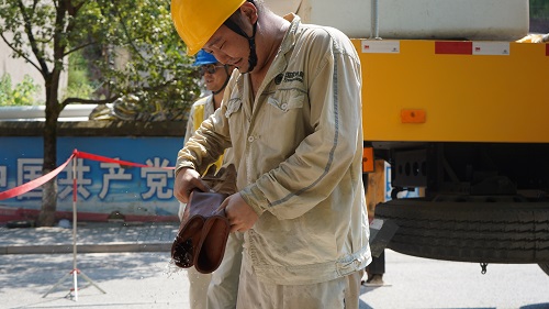 “帶電作業(yè)的方法有三種,分別是中間電位作業(yè)法、地電位作業(yè)法以及等電位作業(yè)法,今天我們采用的中間電位作業(yè)法。今天天氣不錯(cuò),雖然溫度高,但濕度低,能夠滿足帶電作業(yè)條件。帶電作業(yè)必須身著密不透風(fēng)的絕緣套裝,在高溫下,作業(yè)人員體感往往會達(dá)到60℃。雖然辛苦,但只要能少停電,盡可能的給人民群眾帶去清涼,再苦再累都值得。”帶電作業(yè)班班長張敏說道。