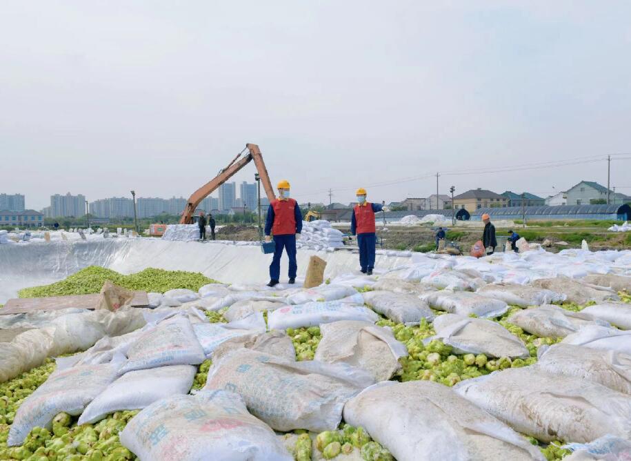 經(jīng)過緊張的搶收腌制后,全市21個大型收購點的腌制池內(nèi)堆滿了榨菜。據(jù)了解,2022余姚榨菜鮮頭總產(chǎn)量達24萬噸左右,在時間和鹽分的雙重孕育下,腌制池里的榨菜將為當(dāng)?shù)丶庸て髽I(yè)提供一年的原材料。