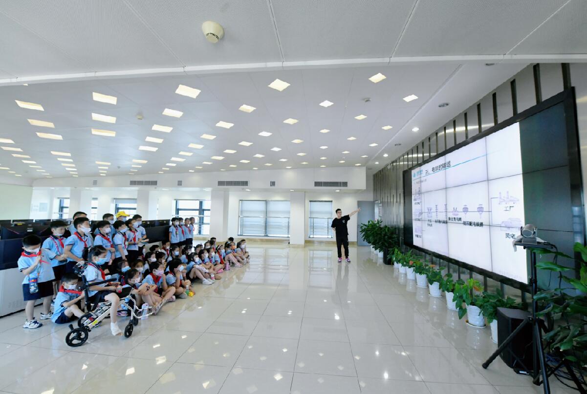 中國(guó)電力網(wǎng)訊 “家庭用電一般是220伏,但是我們管理的電卻有1萬(wàn)伏、35萬(wàn)伏、110萬(wàn)伏……”。7月10日,在國(guó)網(wǎng)余姚市供電公司的電力調(diào)度控制分中心的大廳里,工作人員正在為40名小學(xué)生講解供電公司的工作內(nèi)容,新奇的知識(shí)和有趣的講解引起了同學(xué)們的陣陣掌聲。