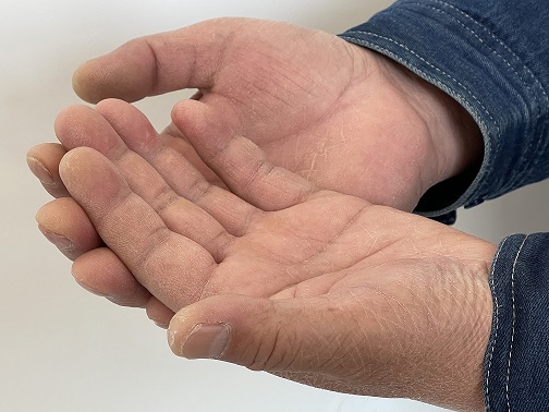 記不清在多少個凜冬和雪天進行線路應急搶修工作,特別是長時間在桿塔上作業(yè),讓張旭棟患上了頸椎病和腰腿關(guān)節(jié)炎。此外,張旭棟也沒有過多地“注意保護他的雙手”。在戶外溫度接近零下30攝氏度的冬季工作,線手套、絕緣手套根本無法抵御得了嚴寒。但張旭棟好像是有著使不完的勁兒,即便雙手被凍得顫抖發(fā)麻,他也沒停下,只想著能盡快完成搶修,恢復送電。有時在給設備部件的螺栓進行預緊時,不免磕碰在架構(gòu)尖銳的棱角上,工作結(jié)束后摘下手套,張旭棟的手通常是青一塊紫一塊,甚至隔著線手套被劃傷流血后都已結(jié)痂……