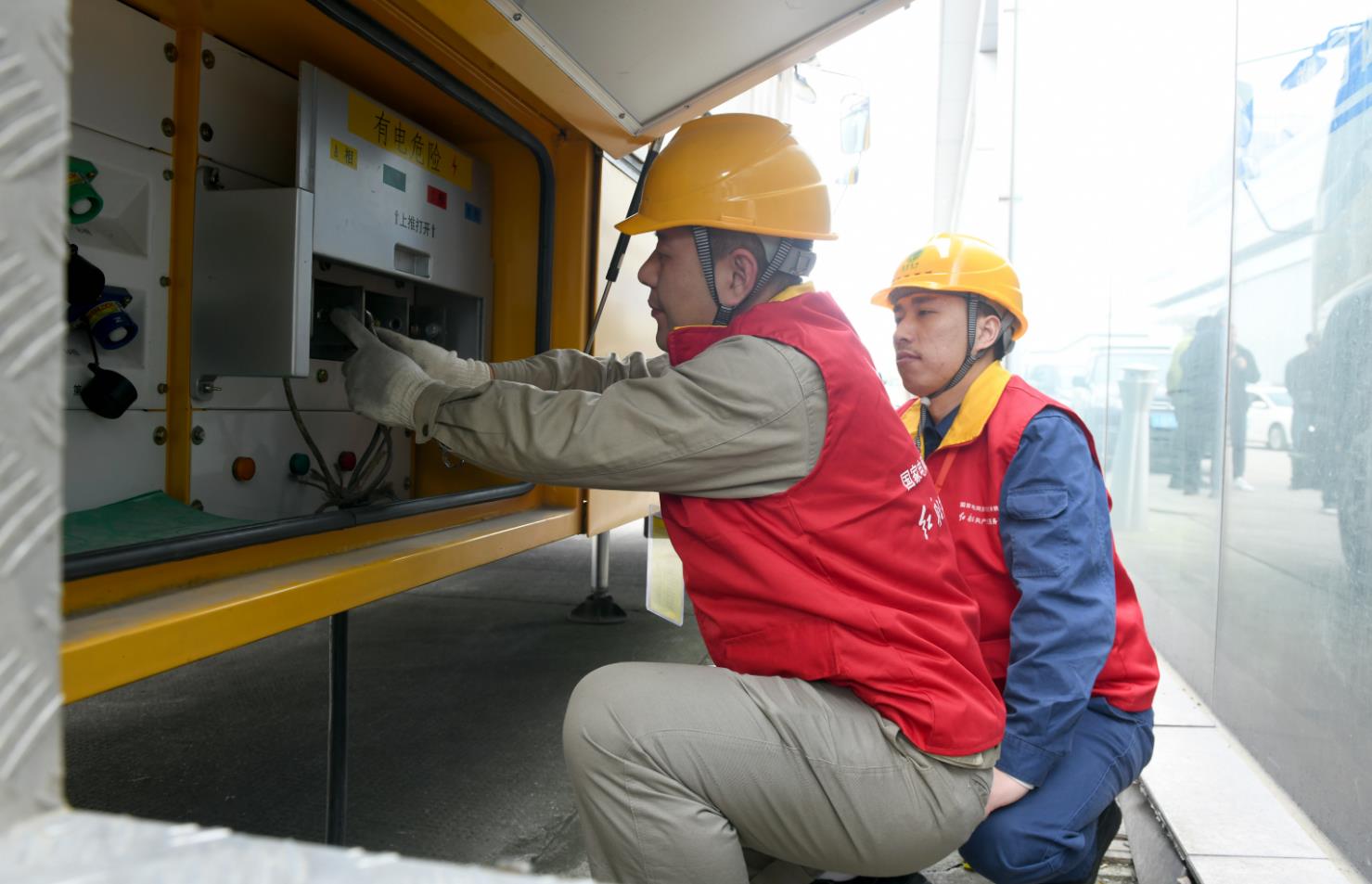 中國(guó)電力網(wǎng)訊(通訊員苗云夢(mèng)、秦蕾)3月27日下午,一臺(tái)黃色的400千伏安的自備電源車勻速駛?cè)胫兴車?guó)際會(huì)展中心,車輛停妥后,國(guó)家電網(wǎng)浙江電力(余姚)紅船共產(chǎn)黨員服務(wù)隊(duì)隊(duì)員陳啟鵬從工具箱里拿出工具,輕車熟路地開始連接電源線,進(jìn)行移動(dòng)電源車調(diào)試,為塑博會(huì)開幕式用電保駕護(hù)航。