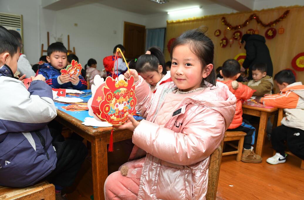 隨后,志愿者與孩子們還分組一起動(dòng)手制作了“龍年小燈籠”,在志愿者的指導(dǎo)一下,整理素材、拼接卡紙、綁流蘇……孩子們一步步依次組裝。制作過程中,孩子們異常興奮,有說有笑,不一會(huì)兒他們就制作完成一盞盞漂亮的小燈籠。看著自己的勞動(dòng)成果,孩子們的笑臉更加燦爛了。