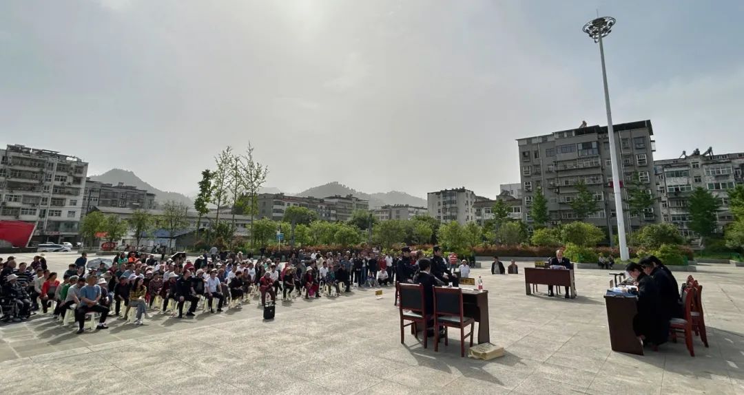 4月23日下午,十堰市張灣區(qū)人民法院環(huán)境資源審判合議庭將法庭搬至柏林鎮(zhèn)廣場(chǎng),現(xiàn)場(chǎng)開(kāi)庭審理并當(dāng)庭宣判一起因架設(shè)電網(wǎng)捕獵野生動(dòng)物并致使一村民被電傷的刑事案件,來(lái)自柏林鎮(zhèn)各村委會(huì)干部、周邊村民、青年志愿者100余人現(xiàn)場(chǎng)旁聽(tīng)。