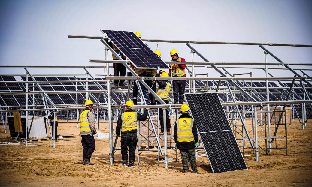 蒙陜寧三省交界的毛烏素沙地腹部,國家能源集團(tuán)國電電力蒙西鄂爾多斯采煤沉陷區(qū)300萬千瓦光伏基地項目建設(shè)如火如荼。作為國家第二批以沙漠、戈壁、荒漠地區(qū)為重點的大型光伏基地項目之一,10.5萬畝的“光伏海洋”每年將把近57億度綠色電能從蒙西戈壁輸送至黃海之濱,滾滾電流跨越1300多公里長途跋涉,將有效緩解山東這個東部沿海工業(yè)大省的電力缺口,為東部地區(qū)的經(jīng)濟(jì)社會發(fā)展提供強(qiáng)大的綠色能源保障。該項目已完成175萬千瓦容量樁基施工,65萬千瓦容量支架施工,25萬千瓦容量組件安裝,1號升壓站已具備并網(wǎng)條件。