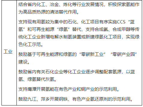 支持鷹潭、萍鄉(xiāng)、景德鎮(zhèn)、宜春等結(jié)合有色產(chǎn)業(yè)、銅產(chǎn)業(yè)集群發(fā)展規(guī)劃和鋼鐵產(chǎn)業(yè)、陶瓷生產(chǎn)綠色轉(zhuǎn)型、鋰電產(chǎn)業(yè)融合等,探索氫能規(guī)?;瘧?yīng)用,推進氫冶煉技術(shù)。