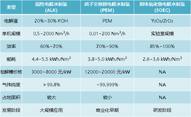 目前,綠氫的主要生產(chǎn)方式為電解水制氫,三種常見的電解水方式如下: