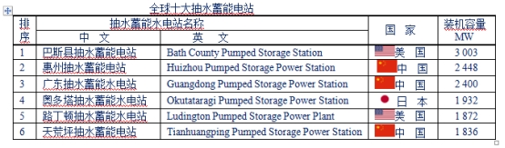世界上第一座抽水蓄能電站是瑞士于1879年建成的勒頓抽水蓄能電站。當(dāng)今世界上最大的抽水蓄能電站是美國巴斯康蒂抽水蓄能電站,裝機(jī)容量達(dá)3003MW,其次為中國惠州抽水蓄能電站,裝機(jī)容量為2448 MW,廣東抽水蓄能水電站(Guangdong Pumped Storage Power Station),裝機(jī)容量為2400MW。