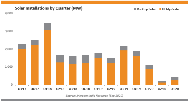 隨著疫情導(dǎo)致的全國范圍封鎖開始逐漸放寬,印度經(jīng)濟也開始緩慢復(fù)蘇。太陽能行業(yè)也因此受到積極的影響,三季度裝機容量明顯好于上一季度。但是,該行業(yè)仍然有很長的路要走,四季度的部分項目調(diào)試日期已被批準延期至2021年上半年。