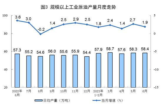 原油生產(chǎn)保持平穩(wěn),進(jìn)口快速增長,原油加工較快增長。上半年,生產(chǎn)原油10505萬噸,同比增長2.1%。進(jìn)口原油28208萬噸,同比增長11.7%。加工原油36358萬噸,同比增長9.9%。6月份,生產(chǎn)原油1752萬噸,同比增長1.9%。加工原油6095萬噸,同比增長10.2%。