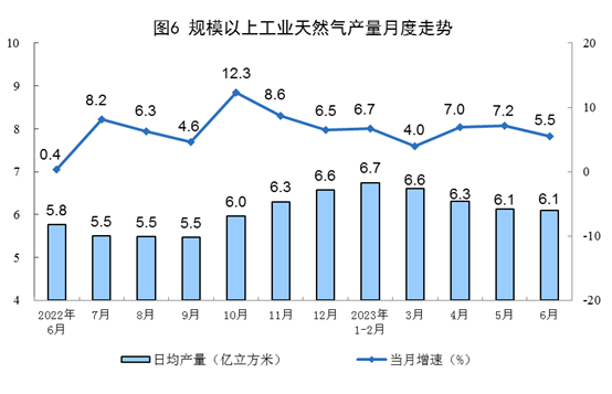 天然氣生產(chǎn)平穩(wěn)增長,進(jìn)口增速較快。上半年,生產(chǎn)天然氣1155億立方米,同比增長5.4%。進(jìn)口天然氣5663萬噸,同比增長5.8%。6月份,生產(chǎn)天然氣183億立方米,同比增長5.5%。