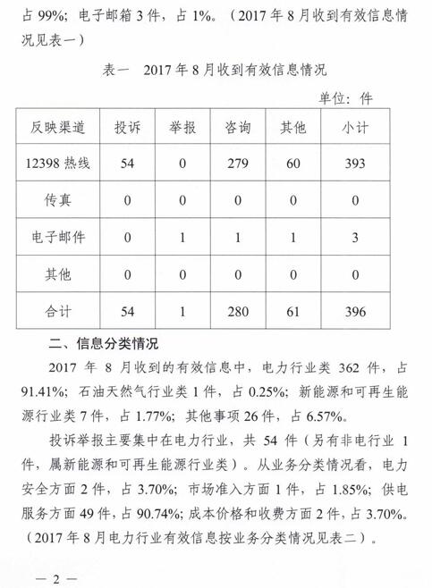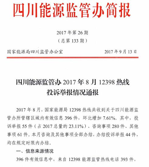 四川省2017年8月12398熱線(xiàn)投訴舉報(bào)情況