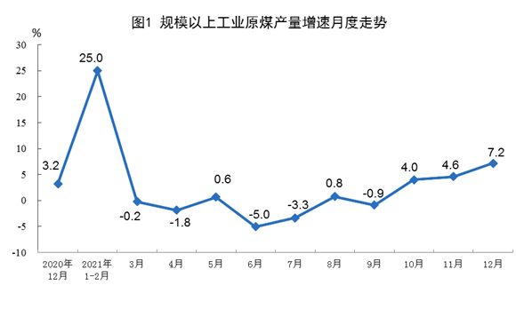 原煤生產(chǎn)繼續(xù)加快,進(jìn)口由增轉(zhuǎn)降。隨著增產(chǎn)保供政策持續(xù)推進(jìn),12月份,生產(chǎn)原煤3.8億噸,同比增長(zhǎng)7.2%,增速比上月加快2.6個(gè)百分點(diǎn),比2019年同期增長(zhǎng)10.7%,兩年平均增長(zhǎng)5.2%,日均產(chǎn)量1241萬(wàn)噸;進(jìn)口煤炭3095萬(wàn)噸,同比下降20.8%。