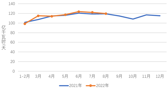 分產業(yè)看①,1-8月,第一產業(yè)用電量767億千瓦時,同比增長11.0%;第二產業(yè)用電量37674億千瓦時,同比增長1.4%;第三產業(yè)用電量10143億千瓦時,同比增長6.1%;城鄉(xiāng)居民生活用電量9255億千瓦時,同比增長15.8%。