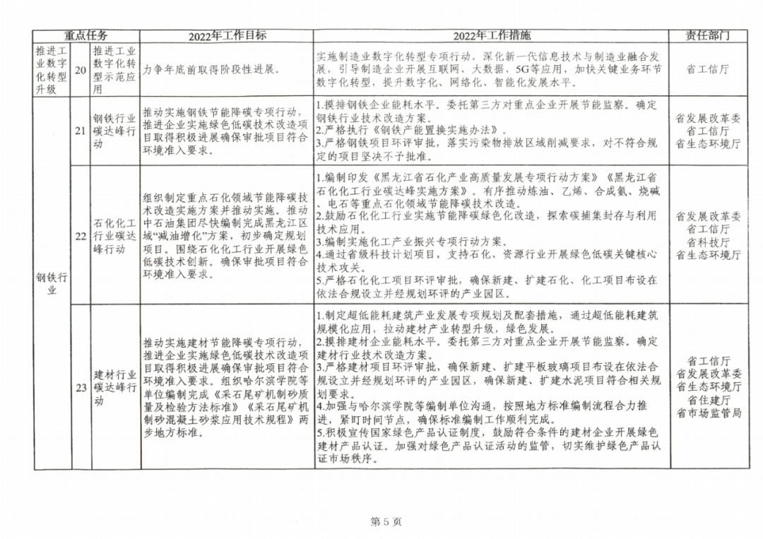 附件:《黑龍江省工業(yè)領域碳達峰實施方案》2022年工作計劃臺賬