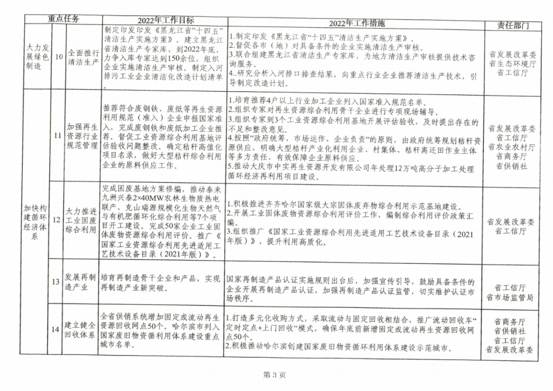 資源綜合利用基地建設優(yōu)化。加快資源循環(huán)發(fā)展,推進齊齊哈爾、大慶、雞西、七臺河等國家級資源綜合利用基地建設,支持基地內的企業(yè)開展工業(yè)資源綜合利用共性關鍵技術裝備研發(fā)應用,著力提升基地技術水平和產業(yè)服務能力。支持工業(yè)園區(qū)和重點企業(yè)開展資源循環(huán)利用改造和示范,形成典型行業(yè)可復制推廣技術路線和模式。