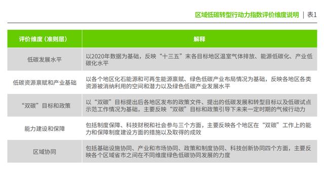 區(qū)域低碳轉(zhuǎn)型行動(dòng)力指數(shù)評價(jià)維度說明。綠色和平供圖