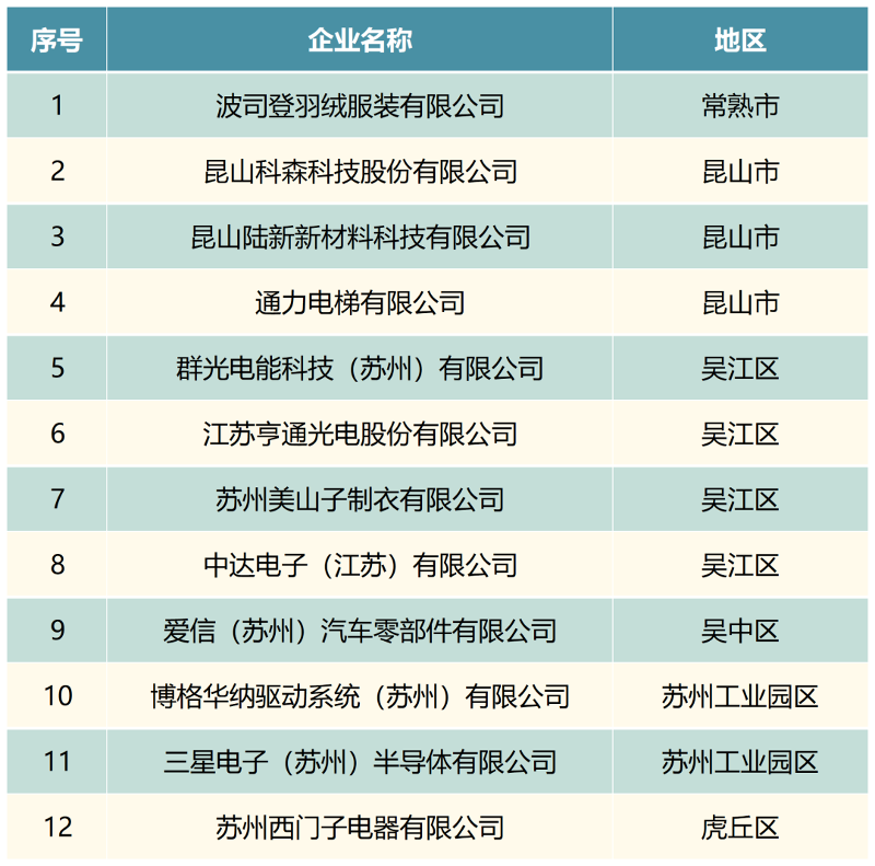 蘇州市“近零碳”工廠(chǎng)(第二批)名單如下: