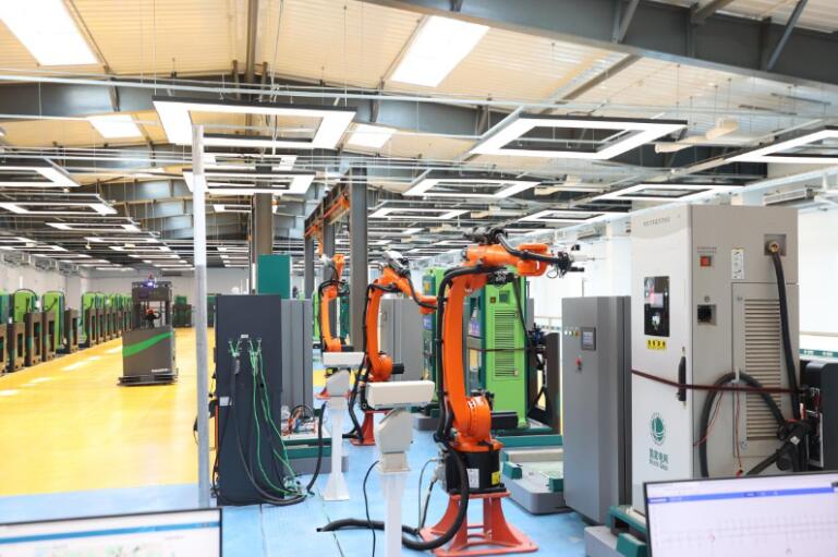 圖為基礎(chǔ)充電設(shè)施智能檢定檢測流水線