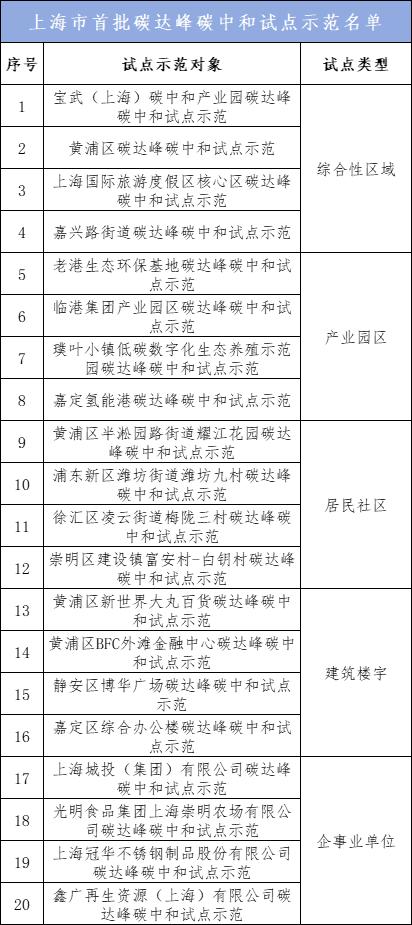 今年8月15日是第二個(gè)全國生態(tài)日,在長寧區(qū)舉辦的全國生態(tài)日上海主場活動(dòng)上,上海首批碳達(dá)峰碳中和試點(diǎn)示范名單公布,包含20個(gè)試點(diǎn)示范對象。