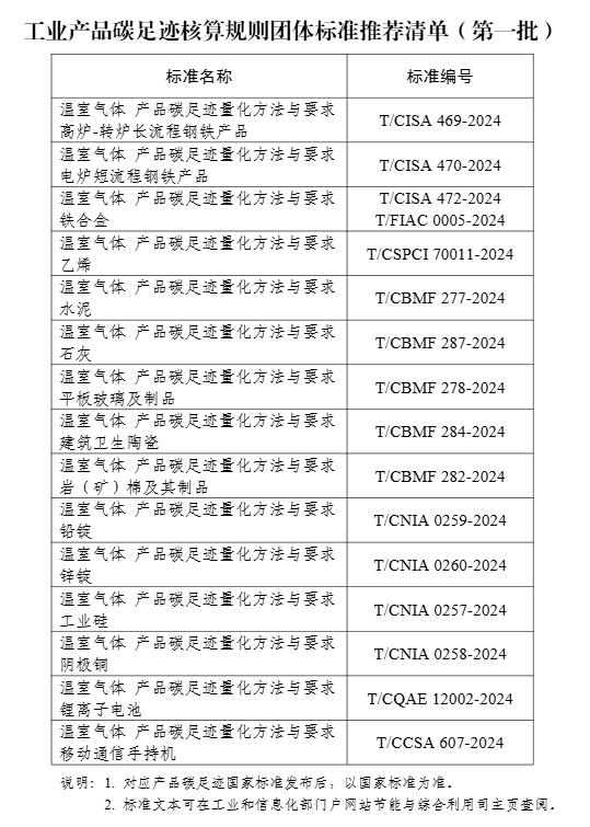 工業(yè)和信息化部 生態(tài)環(huán)境部 國家發(fā)展改革委 市場監(jiān)管總局關(guān)于公布工業(yè)產(chǎn)品碳足跡核算規(guī)則團(tuán)體標(biāo)準(zhǔn)推薦清單(第一批)的通告