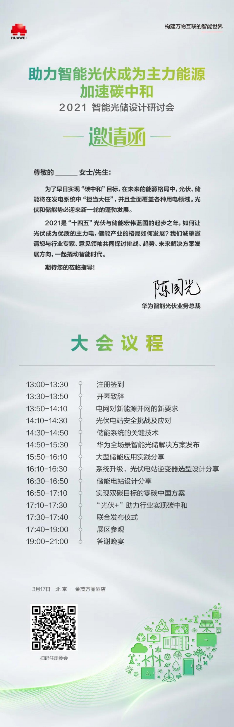 2021是“十四五”光伏與儲能宏偉藍圖的起步之年,讓光伏發(fā)電可儲可控,已成為能源轉(zhuǎn)型的必然選擇。如何助力智能光伏成為主力能源,促進儲能、光伏產(chǎn)業(yè)協(xié)同良性發(fā)展,是實現(xiàn)我國碳中和目標的重中之重。為了盡快迎接零碳時代的到來,3月17日,2021智能光儲設(shè)計研討會即將在北京舉辦,掃描圖片下方二維碼即可報名參會!