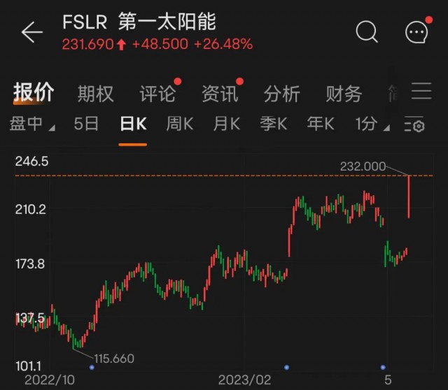 5月12日,美國第一太陽能(First Solar)受一樁并購案影響,暴漲26.48%。今年以來,第一太陽能的股價(jià)累計(jì)漲幅已超過50%。不知道他們的后續(xù),會(huì)不會(huì)發(fā)生“鈣鈦礦大神”的奇葩故事。