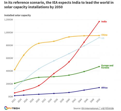 美國EIA預(yù)計(jì),至2050年,印度的太陽能裝機(jī)容量將居世界首位