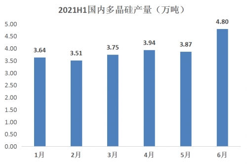 從硅業(yè)分會(huì)2021年上半年預(yù)計(jì)的硅片產(chǎn)量來看,硅料需求量合計(jì)約29.8萬噸,而國(guó)內(nèi)供給量約為28.1萬噸,供給與需求大致處于緊平衡狀態(tài)。硅片產(chǎn)能的超前超量釋放導(dǎo)致硅料總體需求激增,硅料企業(yè)上半年基本都是滿產(chǎn)運(yùn)營(yíng)狀態(tài),部分硅料企業(yè)個(gè)別月份綜合開工率更是高達(dá)111%。
