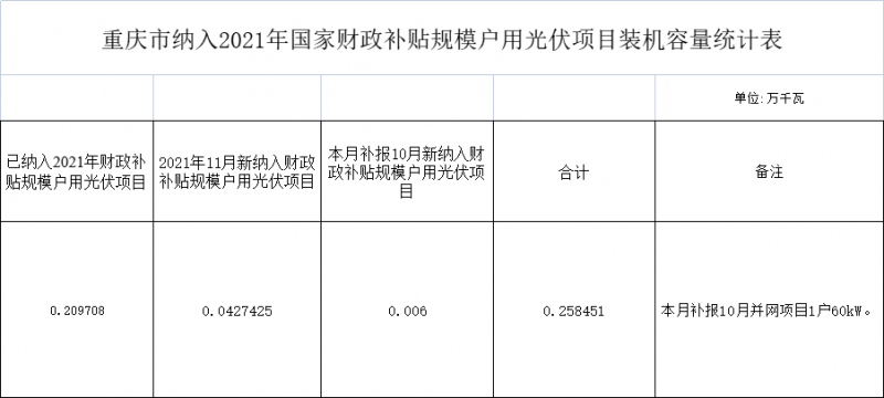 ( 包含重慶市申請納入2021年國家財政補貼規(guī)模戶用光伏項目裝機容量統(tǒng)計表和重慶市申請納入2021年國家財政補貼規(guī)模戶用光伏項目名單)