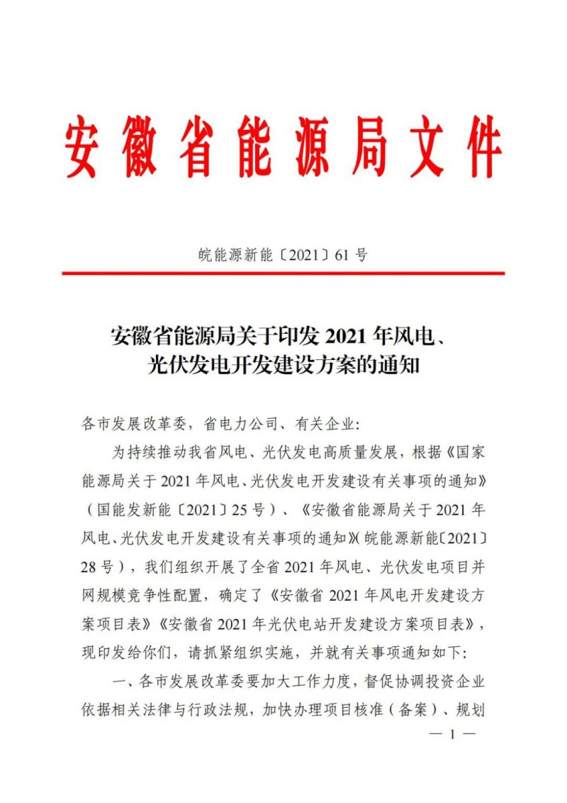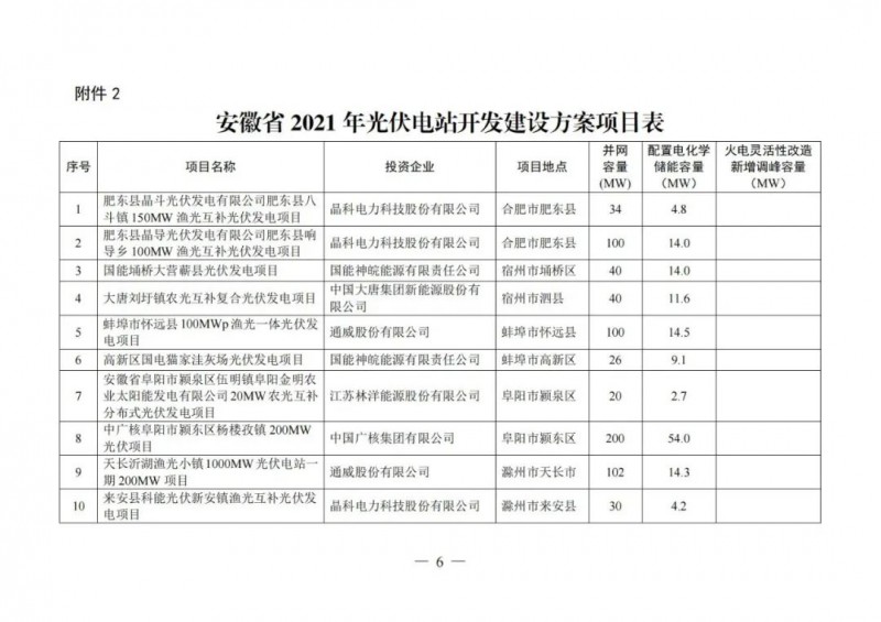 安徽能源局發(fā)布6GW風(fēng)、光項目優(yōu)選名單
