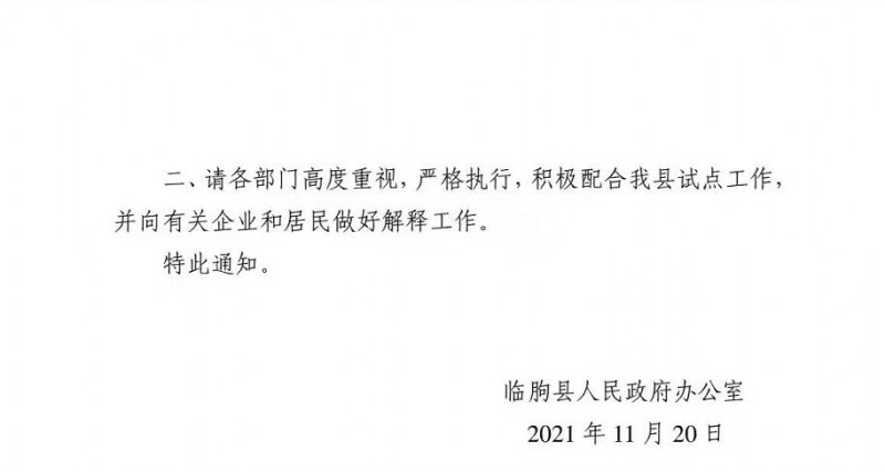 二、請各部門高度重視,嚴格執(zhí)行,積極配合我縣試點工作,并向有關(guān)企業(yè)和居民做好解釋工作。