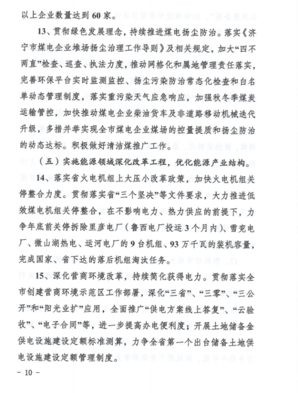 2、能源生產(chǎn)方面:(1)按照現(xiàn)行政策不變的情況下,2022年內(nèi)全市煤炭產(chǎn)量穩(wěn)定在5200萬噸左右;各類發(fā)電企業(yè)完成發(fā)電量490億千瓦時(shí)左右;(2)貫徹落實(shí)國(guó)家及省市煤電裝機(jī)相關(guān)政策,穩(wěn)步實(shí)施“上大壓小”,2022年煤電裝機(jī)容量穩(wěn)定在1050萬千瓦左右;(3)立足濟(jì)寧市資源稟賦實(shí)際,加快新能源開發(fā)利用和消納能力提升,力爭(zhēng)2022年底新能源總裝機(jī)實(shí)現(xiàn)350萬千瓦,新能源發(fā)電量完成45億千瓦時(shí)。