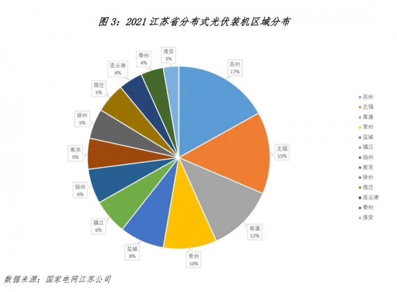 2021 年 9 月,國(guó)家能源局官網(wǎng)公布了全國(guó)整縣(市、區(qū))屋頂分布式光伏開(kāi)發(fā)試點(diǎn)名單,在 676 個(gè)試點(diǎn)縣(市、區(qū))中江蘇共有 59 個(gè),數(shù)量居全國(guó)第三。