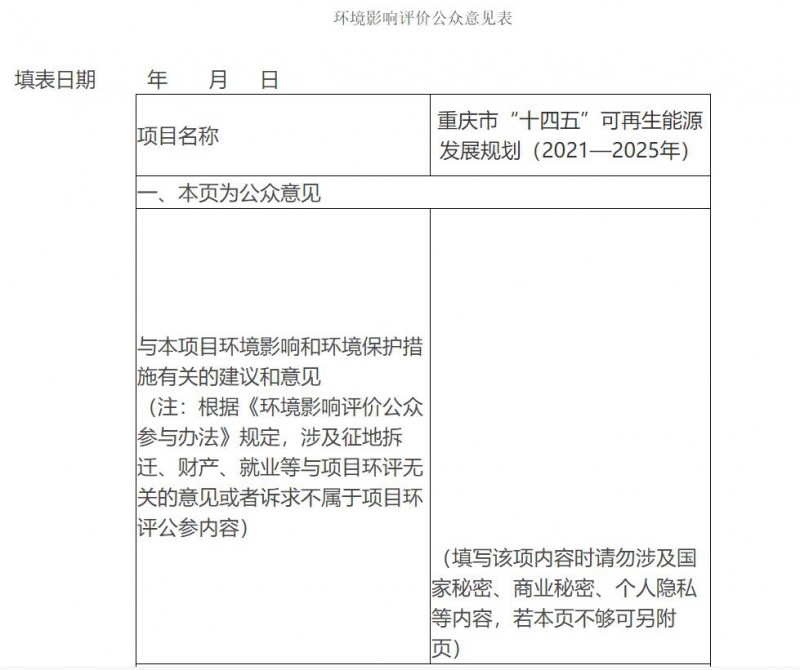 原標(biāo)題:重慶市“十四五”可再生能源發(fā)展規(guī)劃(2021—2025年)環(huán)境影響評(píng)價(jià)公眾參與第一次信息公示