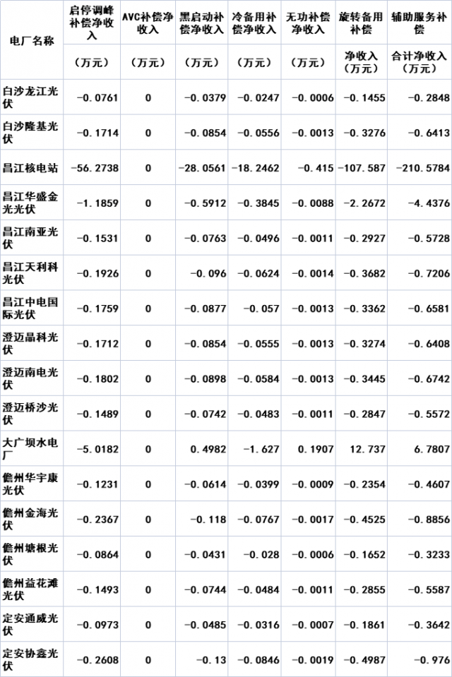 2.2022年6月海南統(tǒng)調(diào)電廠輔助服務(wù)補(bǔ)償結(jié)果
