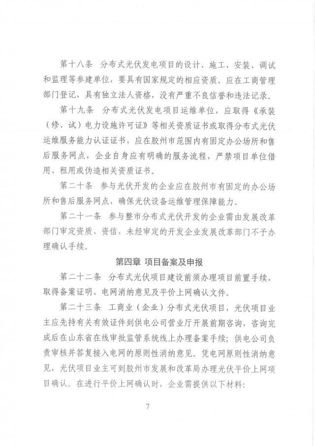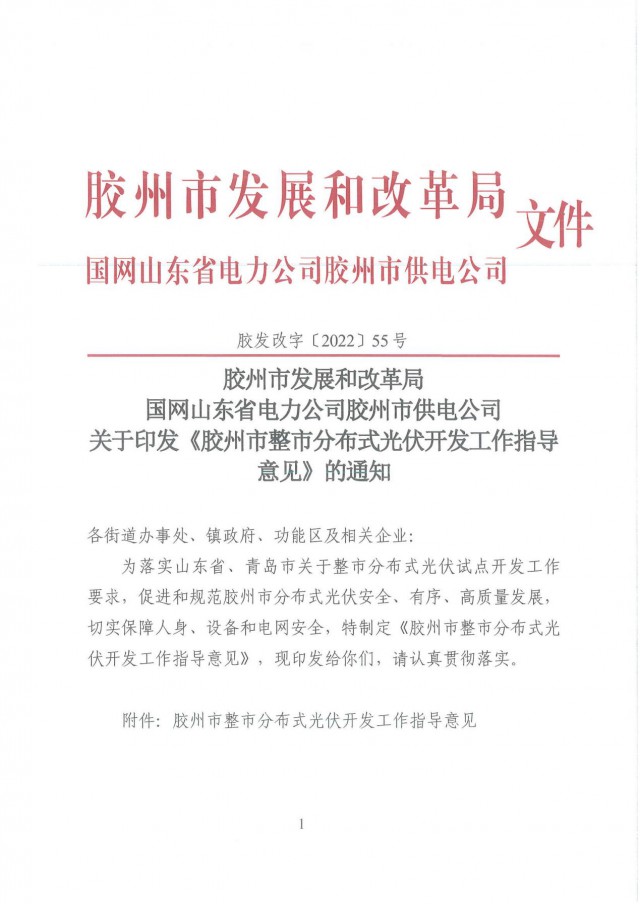 同時(shí)圍繞新型電力系統(tǒng)構(gòu)建,打造“綠色低碳”新膠州,鼓勵(lì)“光伏+工業(yè)”“光伏+農(nóng)業(yè)”、“光伏+儲(chǔ)能”等多種形式的“光伏+產(chǎn)業(yè)”發(fā)展,積板推進(jìn)“農(nóng)村新能源合作社”、“分布式光伏示范村”、“分布式光伏示范園區(qū)”、“分布式光伏示范企業(yè)”的建設(shè),形成可復(fù)制、可推廣的經(jīng)驗(yàn)。高效推進(jìn)膠州市分布式光伏建設(shè)發(fā)展,為推進(jìn)分布式光伏規(guī)?;_發(fā)工作提供“膠州模式”。