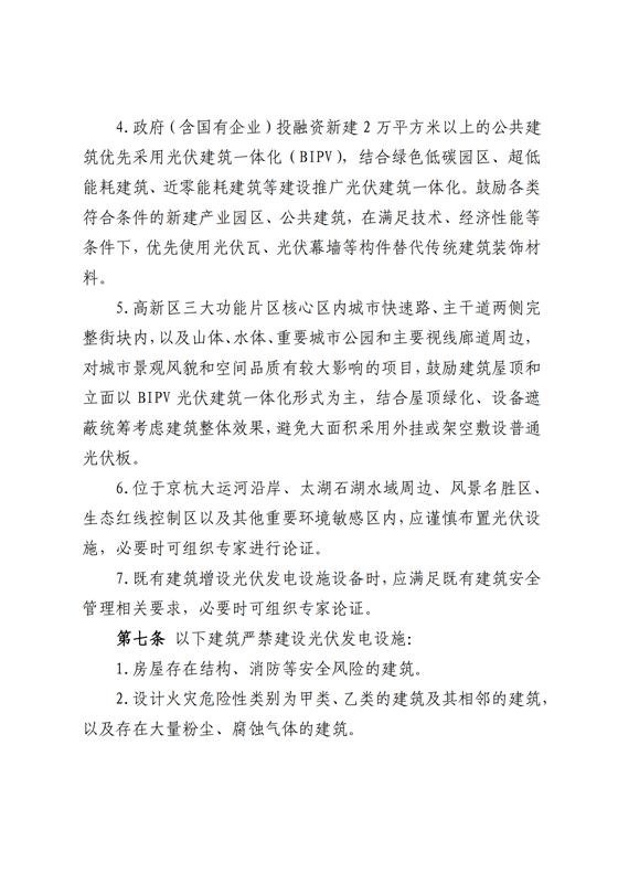 3.積極推進(jìn)公共建筑光伏開發(fā)利用,鼓勵大型商超、倉儲物流、商務(wù)樓宇、賓館酒店、辦公樓宇、學(xué)校醫(yī)院、文體設(shè)施、城市展覽館、泵站水閘、自來水廠、污水處理廠等公共機構(gòu)建筑、公共基礎(chǔ)設(shè)施開發(fā)建設(shè)分布式光伏項目,在符合安全條件前提下按照“宜建盡建”原則安裝屋頂光伏發(fā)電設(shè)施。