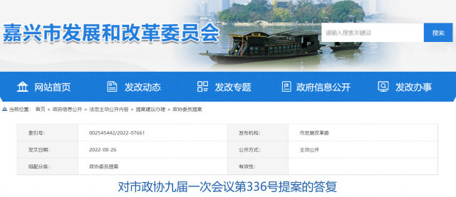 10月24日,嘉興市發(fā)展改革委公布對市政協九屆一次會議第336號提案的答復,其中提到,在農業(yè)農村領域加快老舊農機報廢更新,大力發(fā)展家庭屋頂光伏;在公共機構領域推行能耗限額管理,積極爭創(chuàng)節(jié)約型公共機構示范單位,發(fā)揮節(jié)能示范作用。