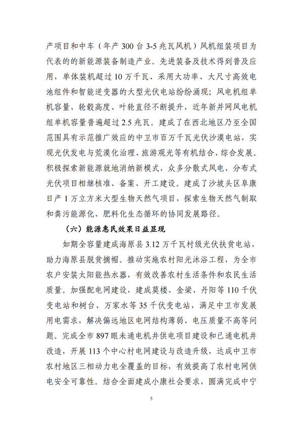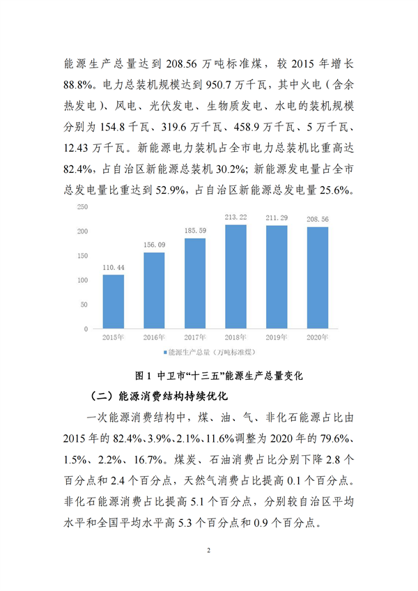12月14日,寧夏中衛(wèi)市發(fā)改委發(fā)布《中衛(wèi)市能源產(chǎn)業(yè)發(fā)展“十四五”規(guī)劃(征求意見(jiàn)稿)》。意見(jiàn)稿顯示,“十四五”期間,全市提出發(fā)展目標(biāo),能源生產(chǎn)供給能力大幅提升,消費(fèi)總量得到有效控制,生產(chǎn)消費(fèi)結(jié)構(gòu)進(jìn)一步優(yōu)化,產(chǎn)業(yè)規(guī)模不斷壯大,普遍服務(wù)水平顯著提升,清潔低碳、安全高效的現(xiàn)代能源體系初步形成,以能源綠色高效發(fā)展為經(jīng)濟(jì)社會(huì)健康持續(xù)發(fā)展提供新動(dòng)能。