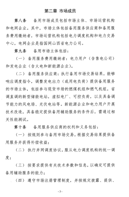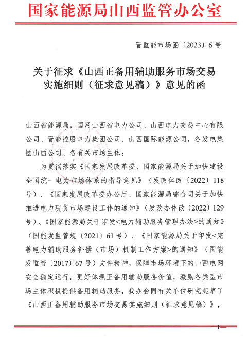 山西能監(jiān)辦發(fā)布山西正備用輔助服務(wù)市場(chǎng)交易實(shí)施細(xì)則(征求意見(jiàn)稿)