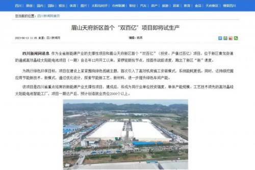 報道指出,作為全省新能源產(chǎn)業(yè)的支撐性項(xiàng)目和眉山天府新區(qū)首個“雙百億”(投資、產(chǎn)值過百億)項(xiàng)目,位于新區(qū)青龍街道的通威高效晶硅太陽能電池項(xiàng)目(一期)自去年12月開工以來,緊鑼密鼓搶節(jié)點(diǎn),掛圖作戰(zhàn)趕進(jìn)度,跑出了新區(qū)“新”速度。該項(xiàng)目是四川省重點(diǎn)培育的新能源產(chǎn)業(yè)支撐性項(xiàng)目,建成后,將成為同行業(yè)工藝技術(shù)領(lǐng)先的高效晶硅太陽能電池智能工廠,項(xiàng)目一期達(dá)產(chǎn)后,預(yù)計創(chuàng)造就業(yè)崗位2000個以上。