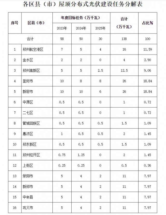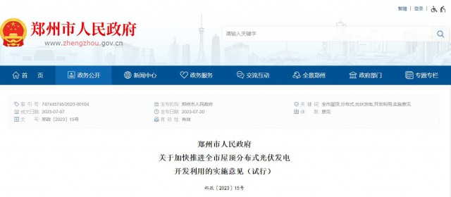 7月20日,鄭州市人民政府發(fā)布《關(guān)于加快推進(jìn)全市屋頂分布式光伏發(fā)電開發(fā)利用的實(shí)施意見(試行)》(簡稱《意見》),明確工作目標(biāo)、重點(diǎn)任務(wù)和支持措施等事項(xiàng)。
