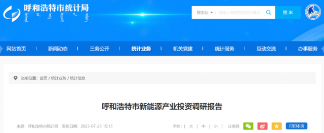 7月25日,呼和浩特市統(tǒng)計(jì)局發(fā)布《呼和浩特市新能源產(chǎn)業(yè)投資調(diào)研報(bào)告》稱,為加快優(yōu)化調(diào)整全市能源結(jié)構(gòu),推動(dòng)能源綠色低碳轉(zhuǎn)型,近期,呼和浩特市統(tǒng)計(jì)局就全市在庫重點(diǎn)新能源產(chǎn)業(yè)項(xiàng)目展開調(diào)研。主要從投資進(jìn)度、企業(yè)生產(chǎn)經(jīng)營情況、資金情況、未來市場預(yù)期等幾個(gè)方面進(jìn)行了深入分析。