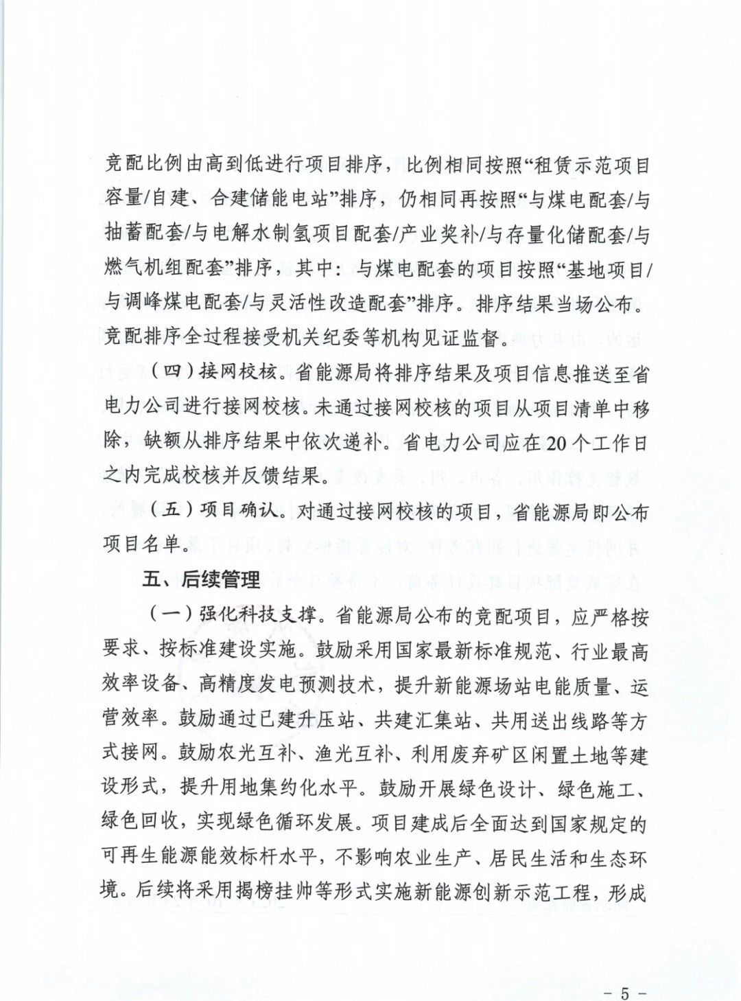 文件明確表示,根據(jù)項(xiàng)目的不同類型,按照20%/2小時(shí)(2.5小時(shí))配置儲能容量,作為基礎(chǔ)條件。新能源項(xiàng)目在基礎(chǔ)配儲容量之外自愿提高配儲比例,作為競爭條件,省能源局依據(jù)項(xiàng)目競配比例從高到低安排新建項(xiàng)目。