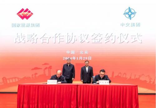國家能源集團黨組書記、董事長劉國躍與中交集團黨委書記、董事長王彤宙會談并見證簽約,集團黨組成員、副總經(jīng)理楊鵬,中交集團副總裁楊志超代表雙方簽約。
