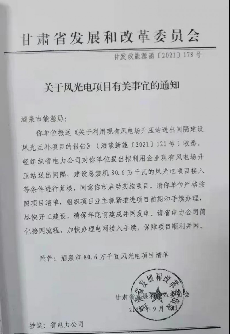 酒泉市能源局也下發(fā)相應(yīng)文件要求項(xiàng)目在9月底前開(kāi)工建設(shè)每間隔10天,在每月的9日、19日、29日向酒泉能源局定期匯報(bào)項(xiàng)目推進(jìn)情況,加快項(xiàng)目建設(shè)進(jìn)程,確保項(xiàng)目盡快建成并網(wǎng)。