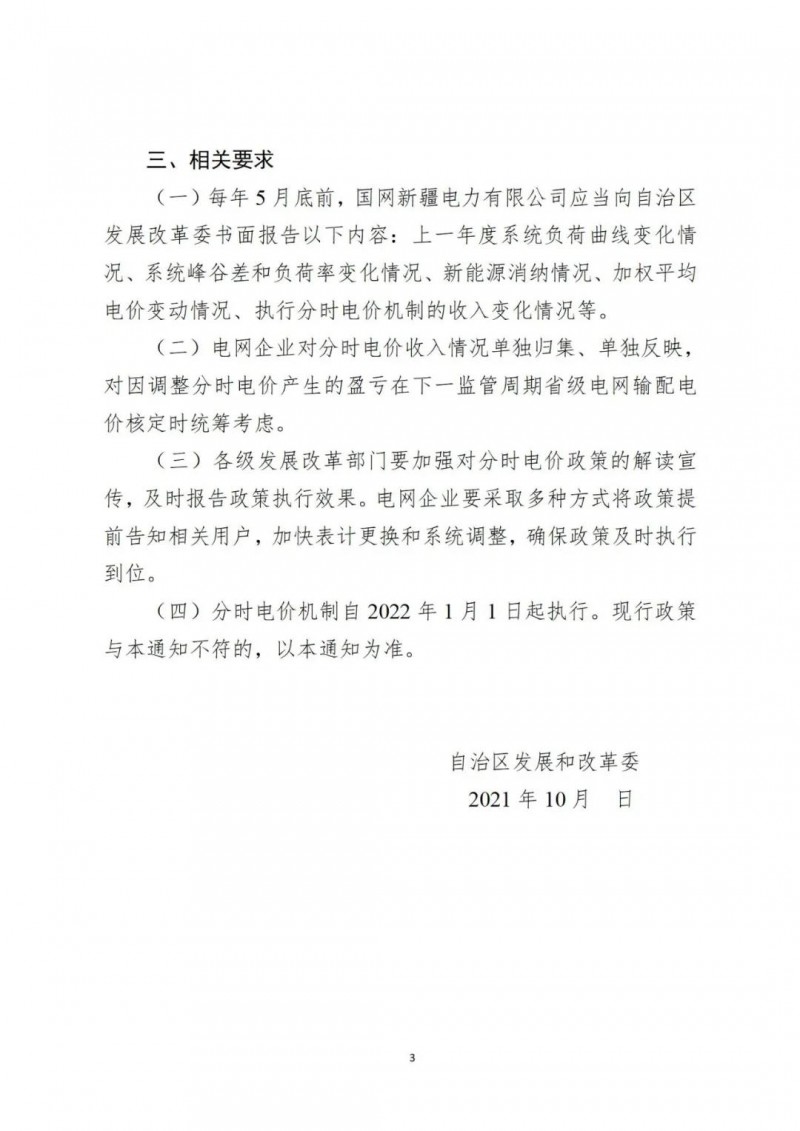 10月15日,新疆發(fā)改委公布了關(guān)于公開征求《關(guān)于完善我區(qū)分時電價機制有關(guān)事項的通知》意見的公告。為適應(yīng)自治區(qū)電力系統(tǒng)峰谷特性變化、電力市場加快建設(shè)和新能源快速發(fā)展的新形勢新要求,新疆發(fā)改委起草了《關(guān)于完善我區(qū)分時電價機制有關(guān)事項的通知(征求意見稿)》。此次征求意見建議的時間為即日起的7個工作日內(nèi)。