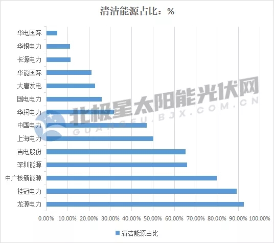 從清潔能源占比情況來看,龍源電力、桂冠電力、中廣核新能源、深圳能源、吉電股份、上海電力清潔能源占比超過50%,其中龍源電力以92.5%遙遙領(lǐng)先,桂冠電力清潔能源占比達到89%,中廣核新能源為79.8%。