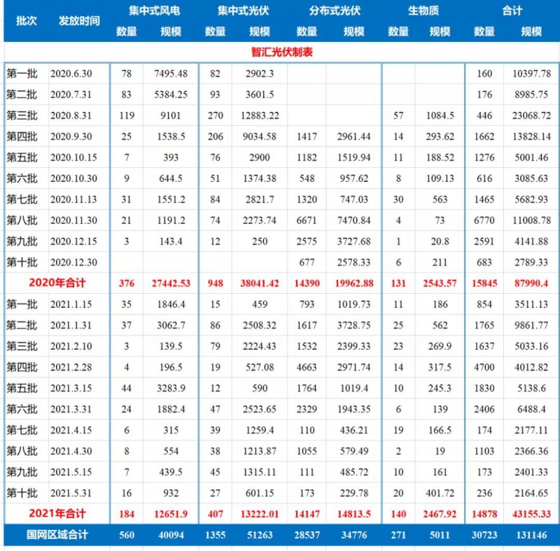 除了進(jìn)入財政部前七批的補貼目錄之外,2020年6月份以來,國家電網(wǎng)每半個月就會公布一批新確權(quán)的項目。