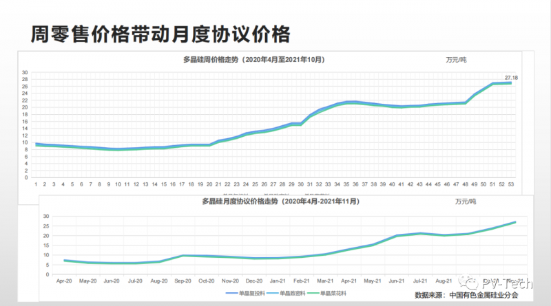另一方面,其他超百吉瓦產(chǎn)能的中小企業(yè)和新進(jìn)入的硅片搶購(gòu)剩余不到10%的硅料,每月推高交易價(jià)格。